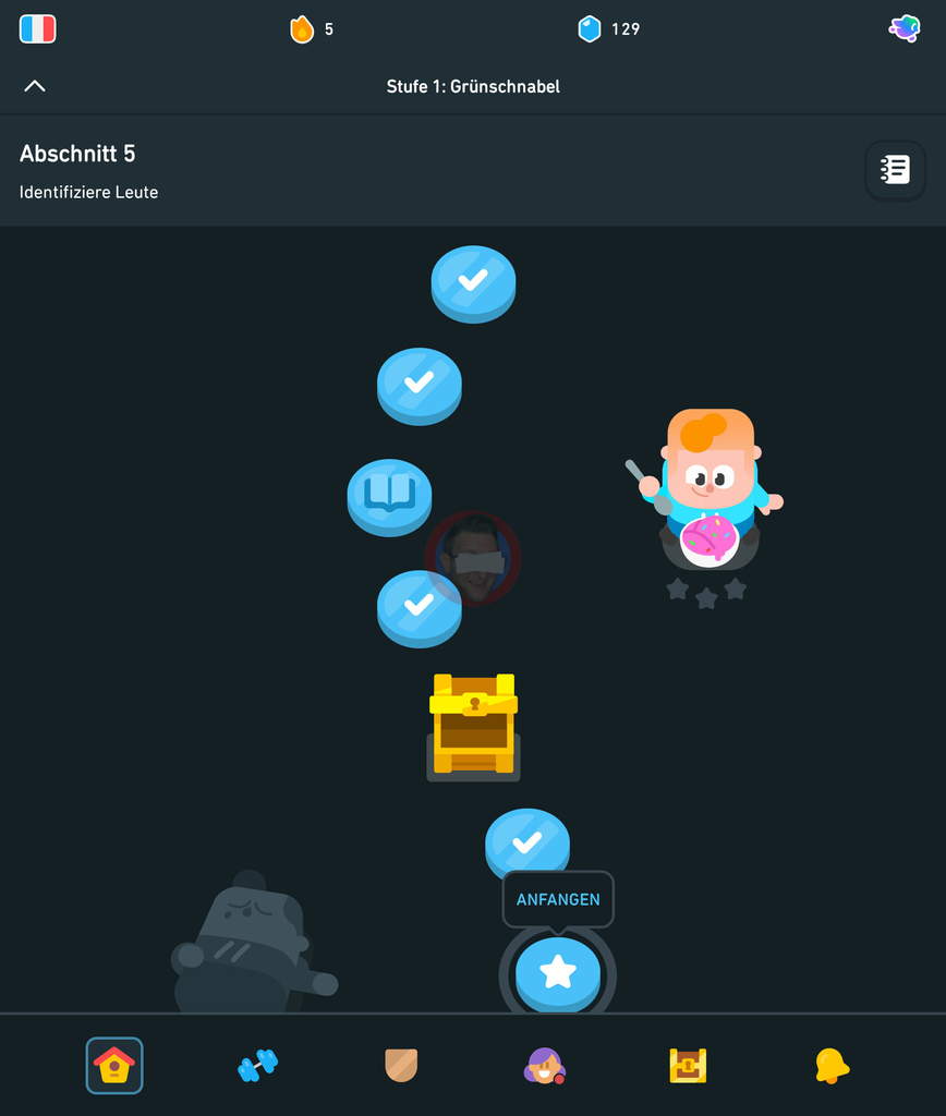 Startseite » Rand mit Notizen » 1 Jahr Französisch lernen mit Duolingo: Stufe 1 – Grünschnabel absolviert (#1) » duolingo-lernzeug